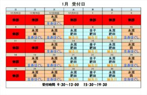 - 2025/12/22 お知らせ なかの整骨院 1月のお知らせ