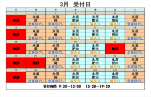 ・3/16(月)会社指定日のため休院とさせて頂きます