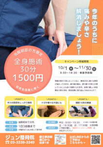 - 2025/10/03 キャンペーン ジュン整骨院 年内最終!初回キャンペーン開催中!! ~11月末迄~