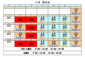 - 2025/10/23 お知らせ なかの整骨院 11月予定表
